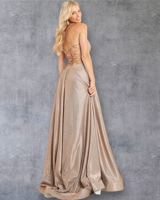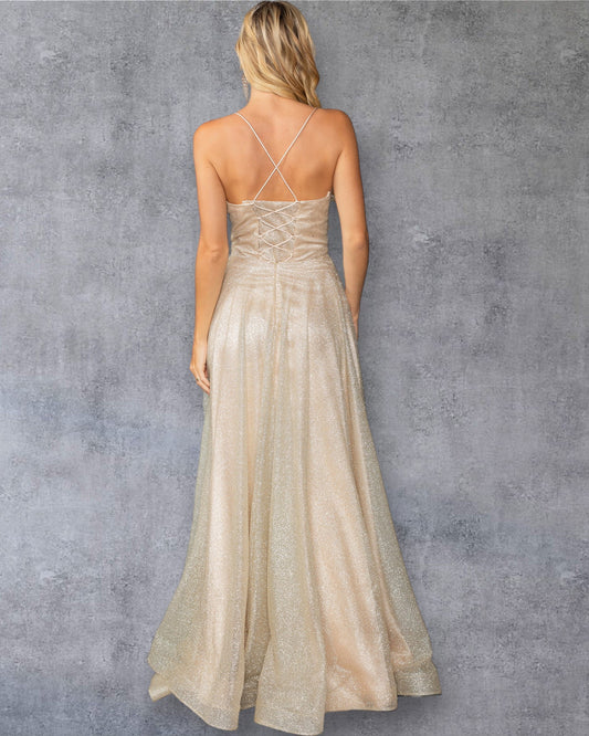 Vestido de Gala Brillante con Espalda Cruzada y Corte Princesa