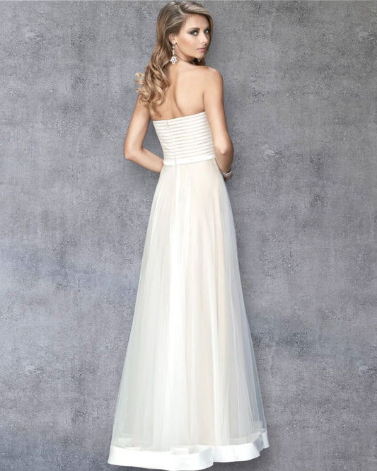 Vestido de Fiesta Blanco con Corset de Pedrería y Falda de Chifón