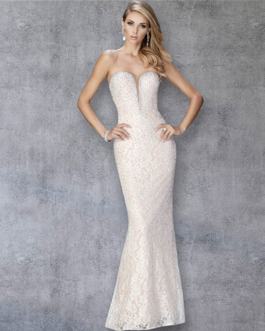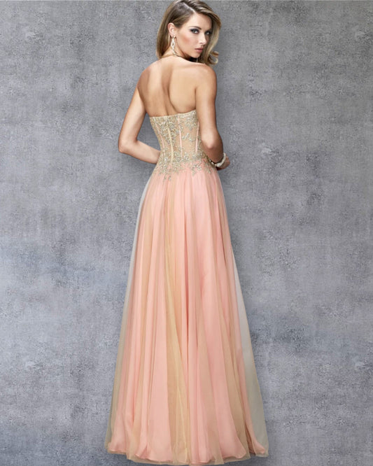 Vestido de Fiesta Strapless con Detalles de Pedrería y Espalda Descubierta