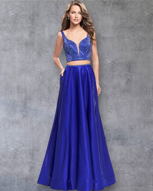 Conjunto de Fiesta en Dos Piezas con Pedrería y Falda Fluida