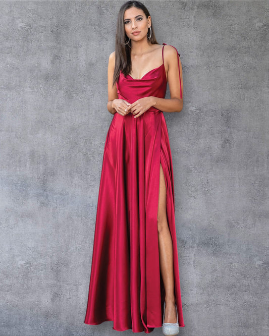 Vestido de fiesta de satén sedoso en forma de A con tirantes finos y espalda desbocada suave
