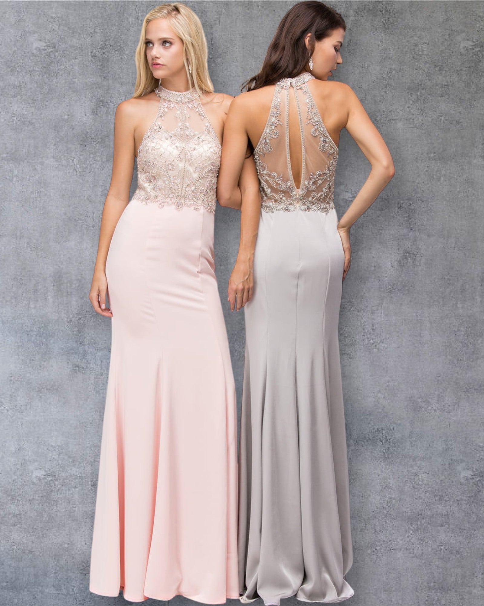 Vestido de fiesta de jersey con cuello alto, cuentas, abertura en forma de ojo de cerradura y silueta sin mangas