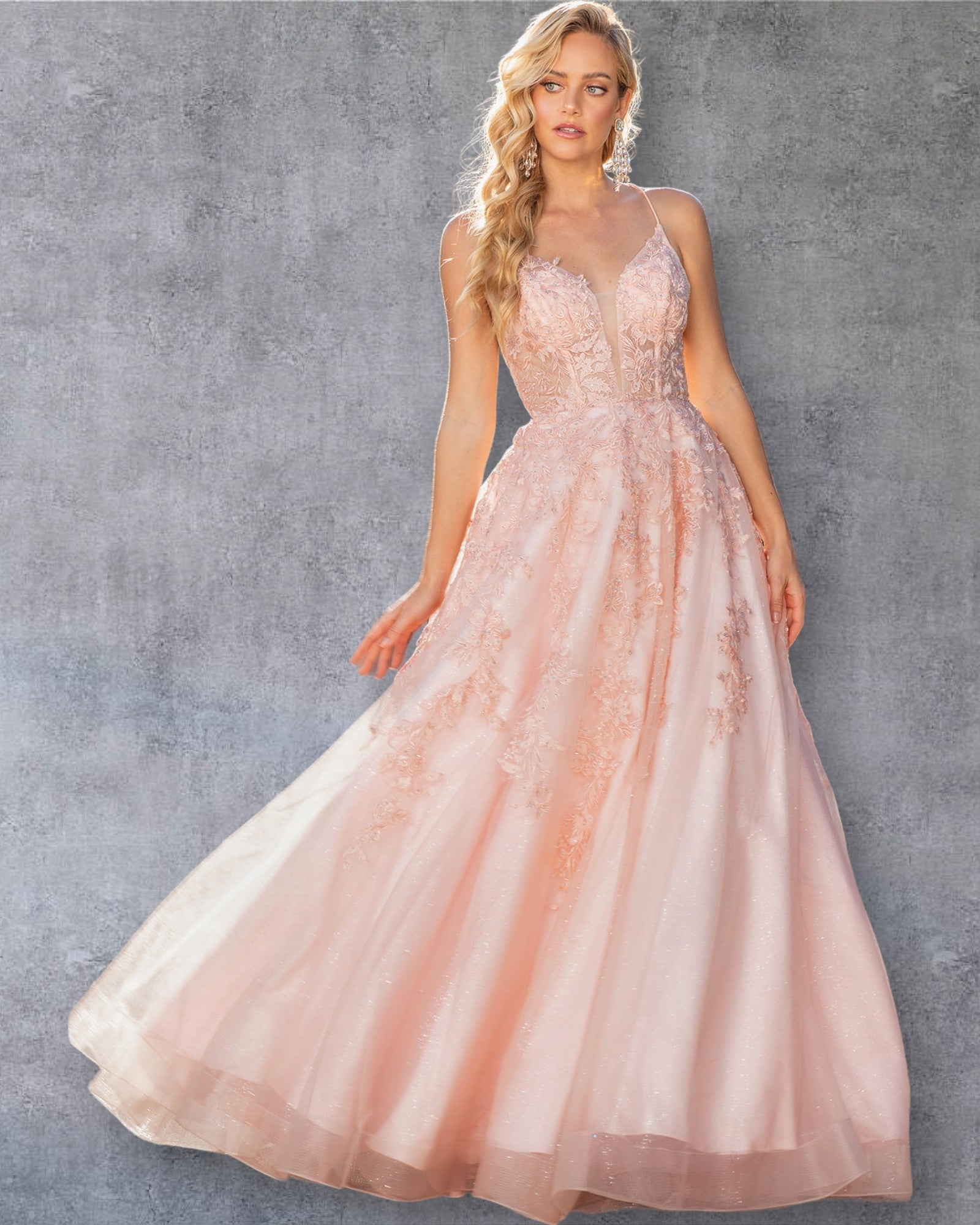 Este romántico vestido de fiesta en color rosa pastel está diseñado para deslumbrar. Su delicado escote en V y los finos tirantes realzan el corpiño bordado con detalles florales, aportando un aire sofisticado y femenino. La falda de tul fluida, con un toque de brillo sutil, crea una silueta etérea que se mueve con gracia en cada paso. Ideal para bodas, quinceañeras o eventos donde la elegancia y el encanto son imprescindibles.