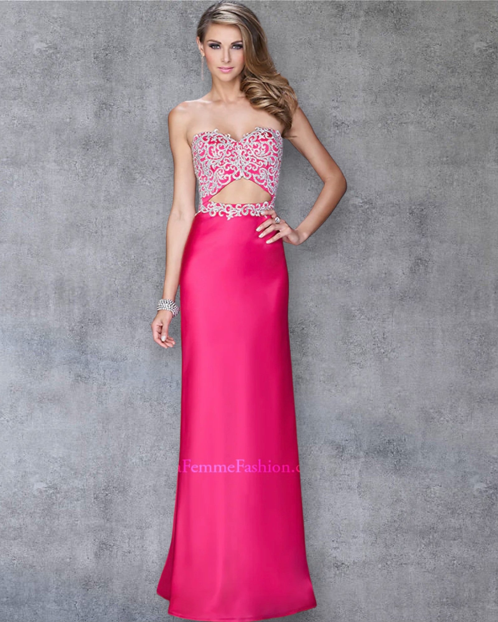 Vestido de Fiesta Fuccia con Corsé Bordado y Espalda Descubierta