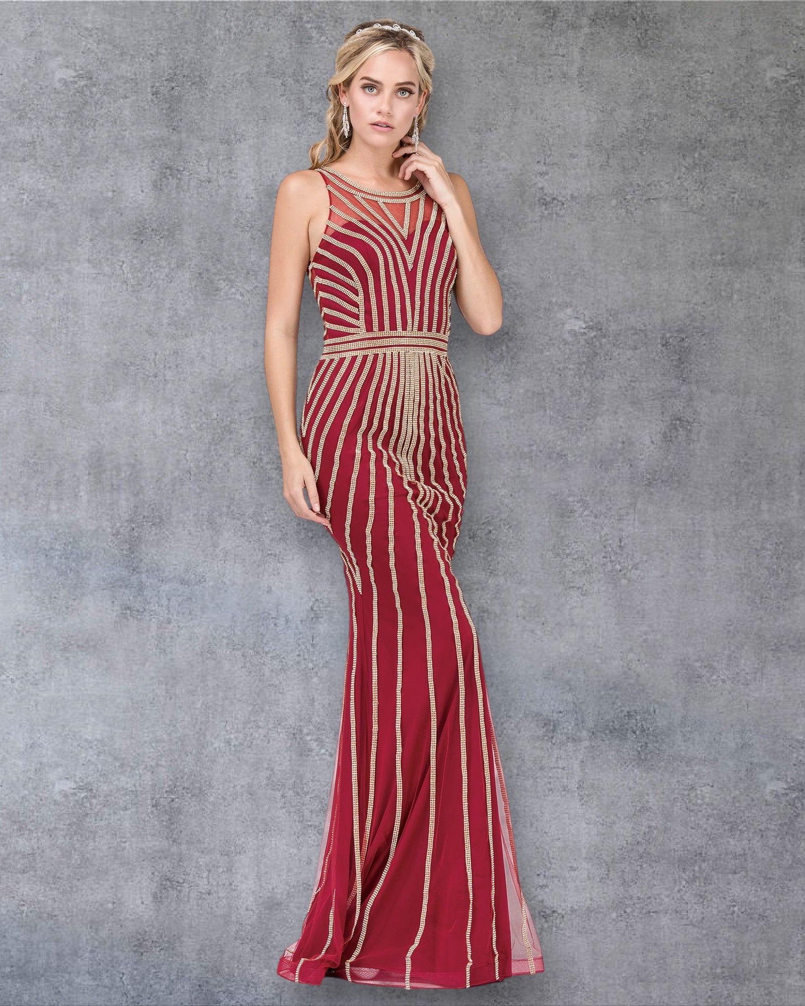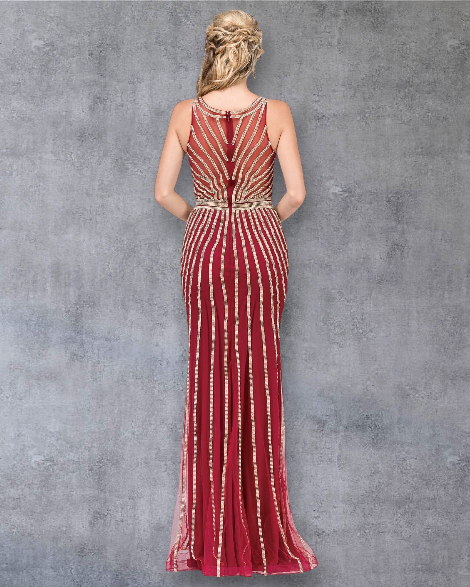 Vestido de fiesta sin mangas con estampado geométrico de lentejuelas, capa transparente y escote en V