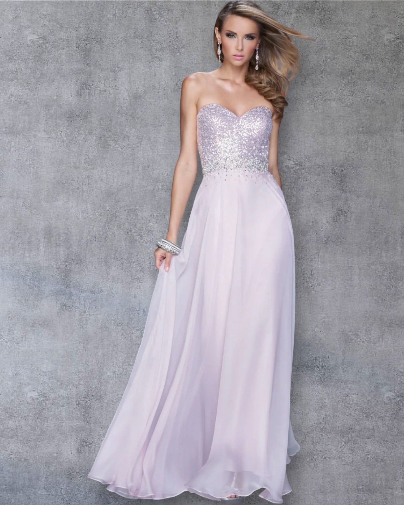 Vestido de Gala Strapless con Corset de Brillos y Falda de Chifón