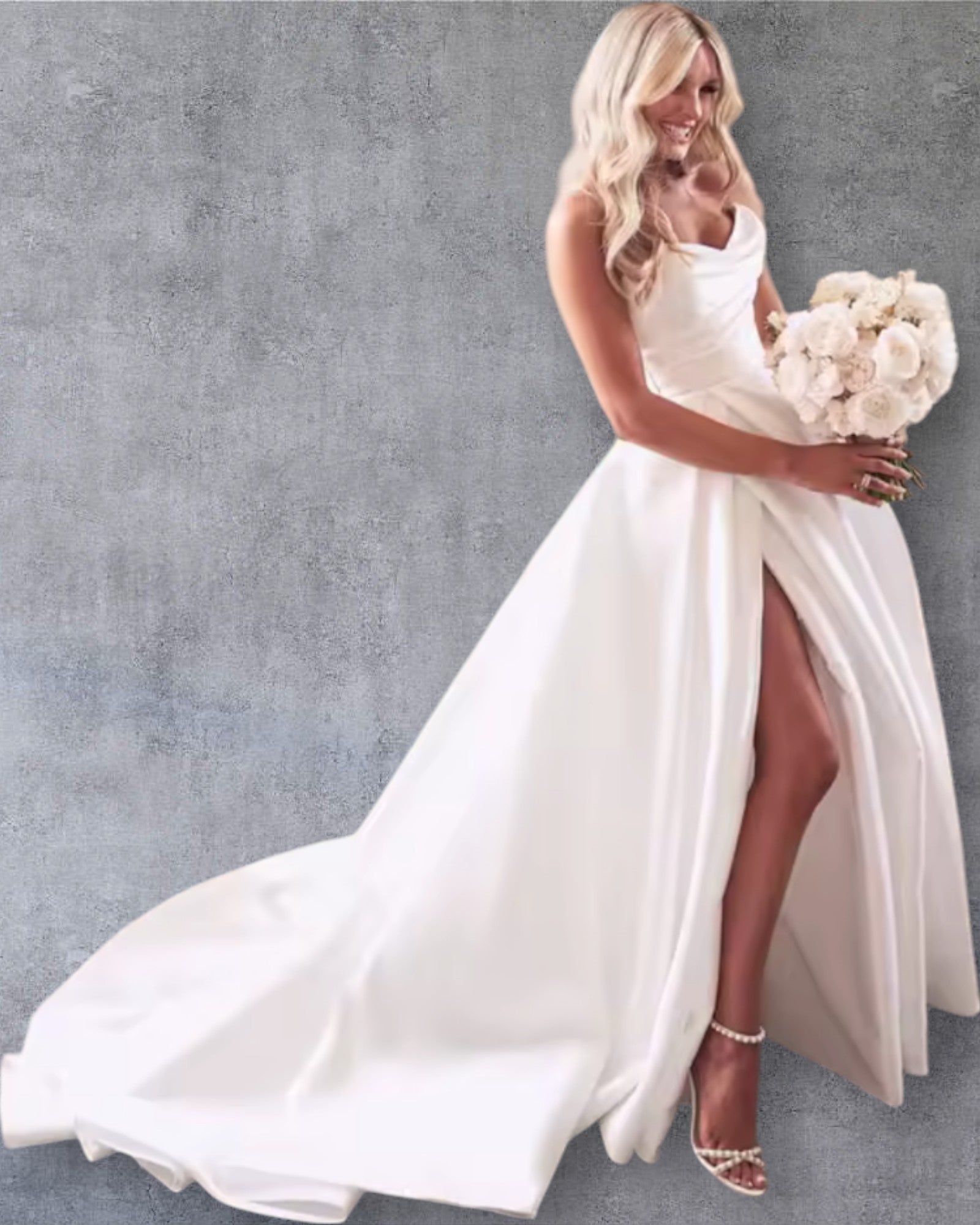 Vestido de Novia Elegancia Moderna con Escote Draped y Abertura en Pierna