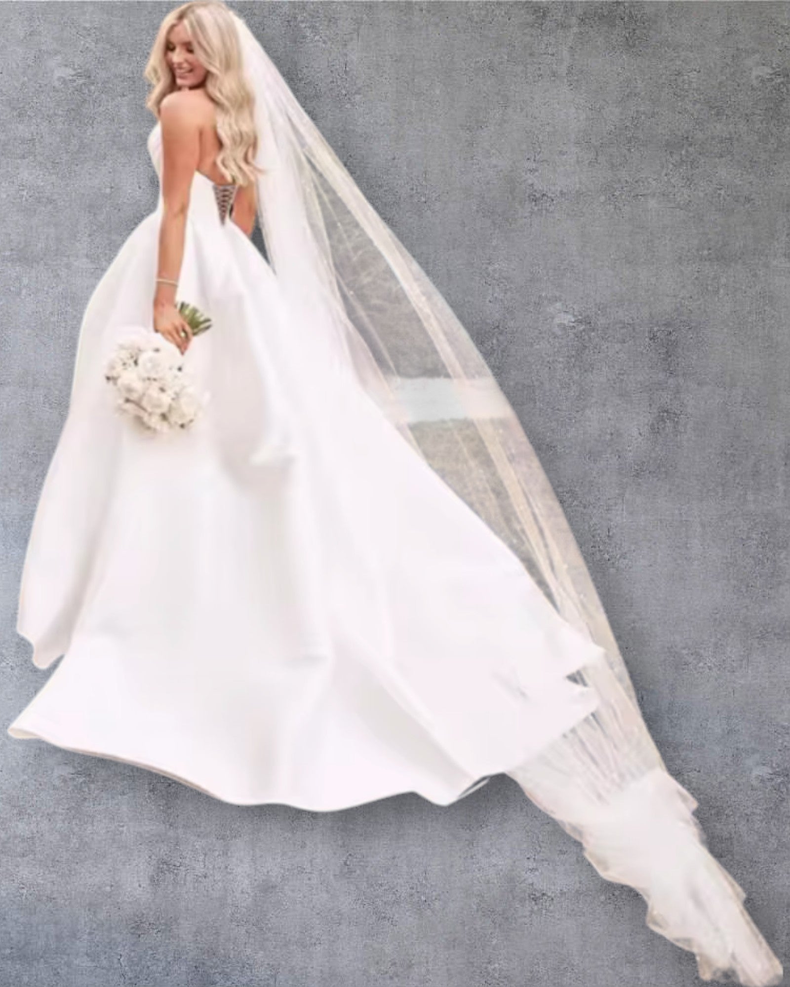 Deslumbra en tu gran día con este espectacular vestido de novia de diseño contemporáneo. Confeccionado en satén de alta calidad, su escote drapeado realza el busto de manera elegante, mientras que la abertura en la pierna añade un toque de sensualidad y modernidad. La falda amplia y fluida crea una silueta etérea con una cauda sutil que aporta movimiento y sofisticación a cada paso. Ideal para novias que buscan un estilo chic, glamuroso y atemporal.