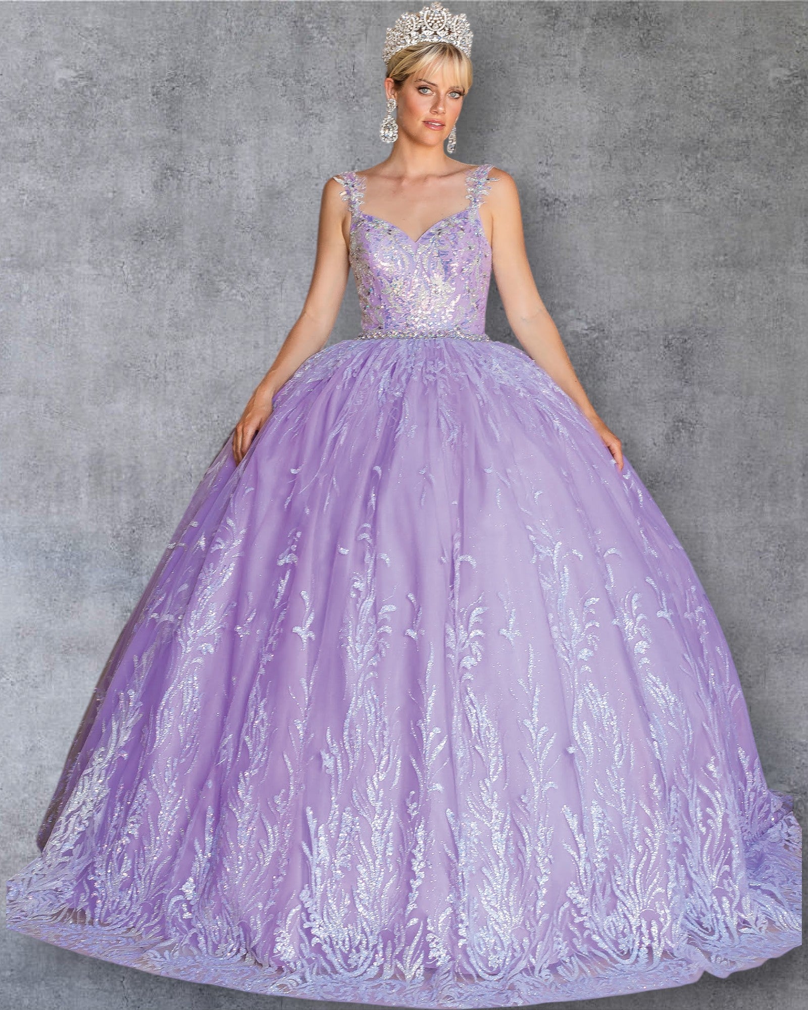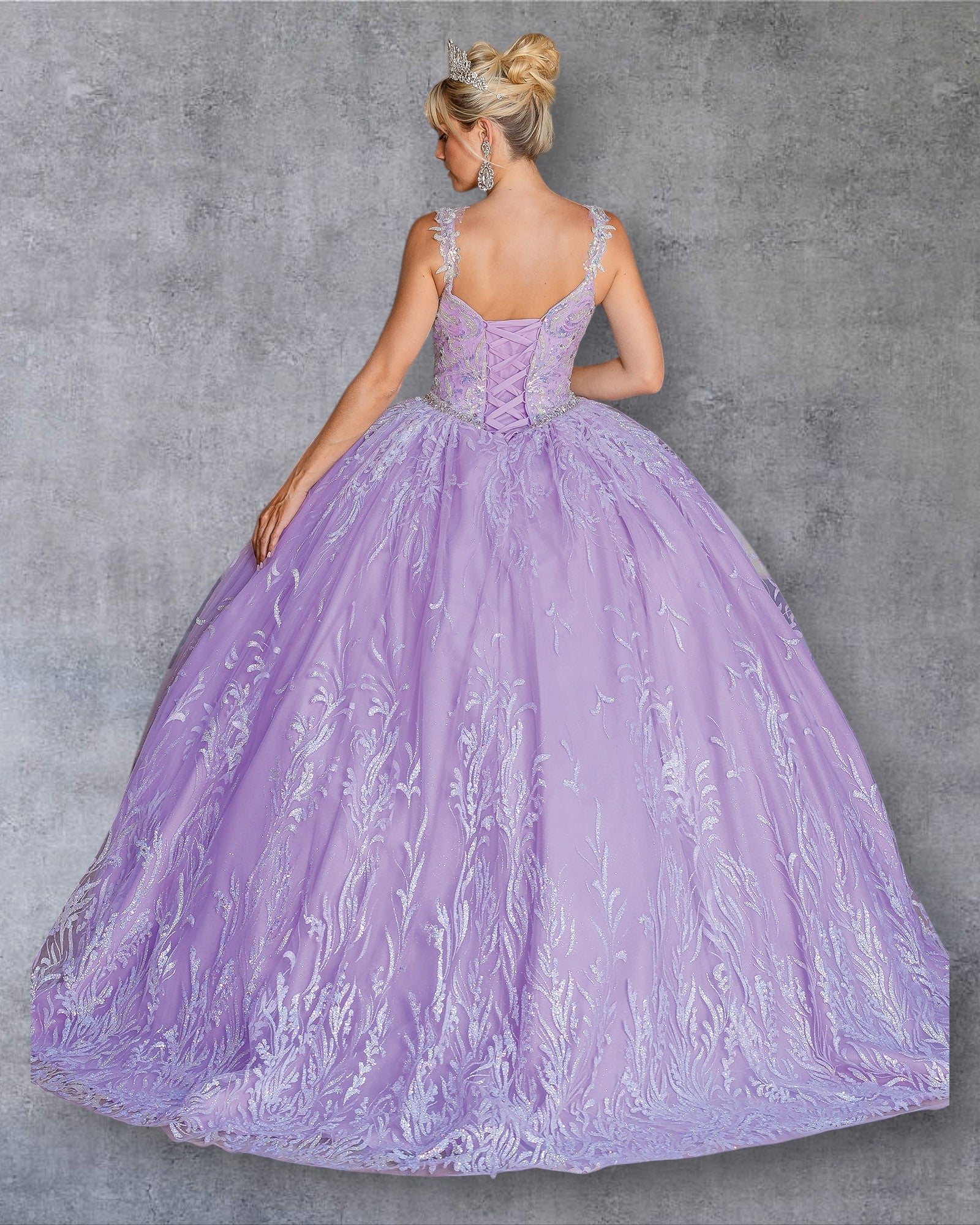 Vestido de quinceañera con corpiño de cuentas, superposición bordada